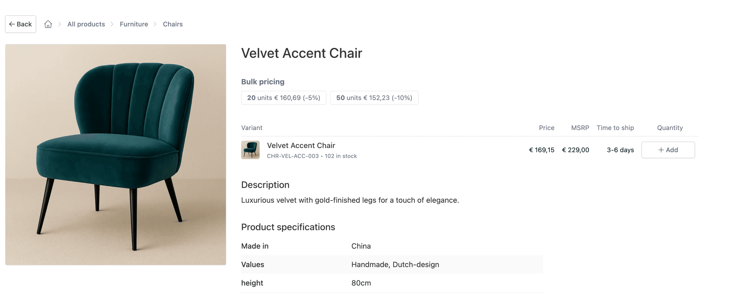 B2B pricing is rarely straightforward. Volume discounts, customer-specific agreements, bulk pricing — it can quickly become complex. If buyers need to call or email to confirm their price, the process slows down. Next to that, you might create customer specific products, which are only intended for a large customer or a group of customers.