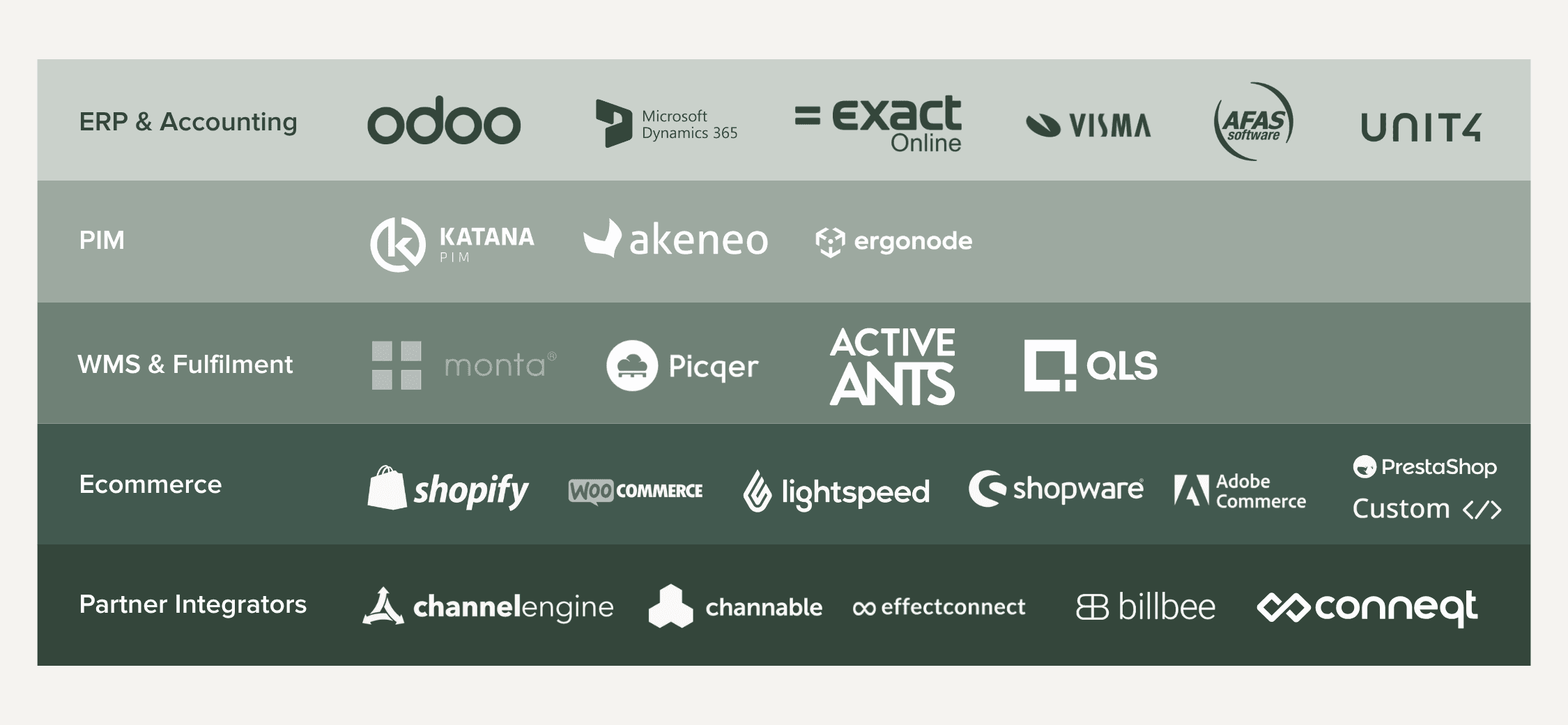 Orderchamp Cloud integrates with ERP, PIM, WMS and CRM systems, ensuring: