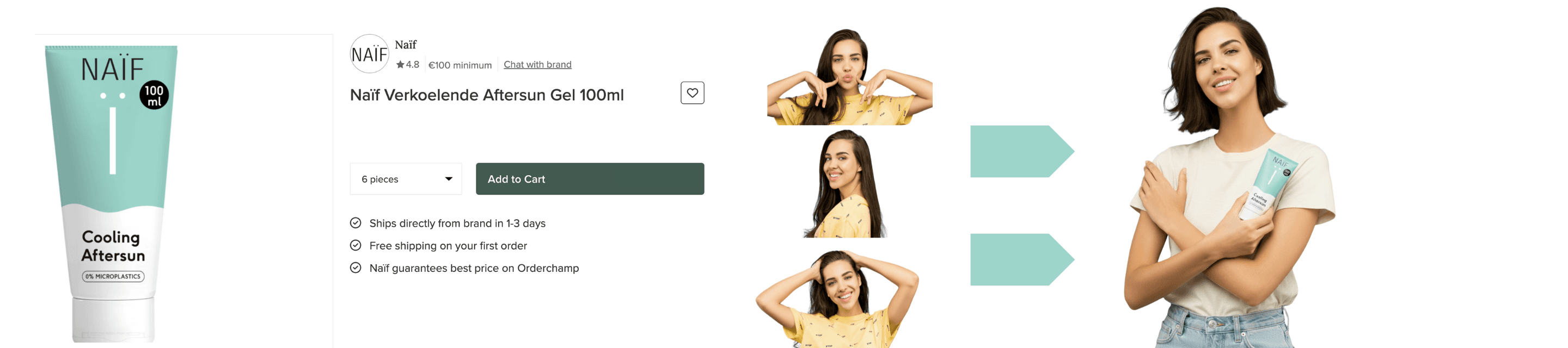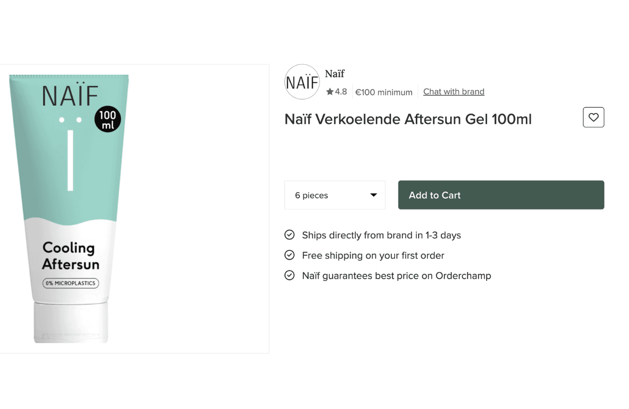For this example we are using a product from Orderchamp Marketplace. It’s from the brand Naïf, and, for this example we are using their 100ml Cooling Aftersun Gel.