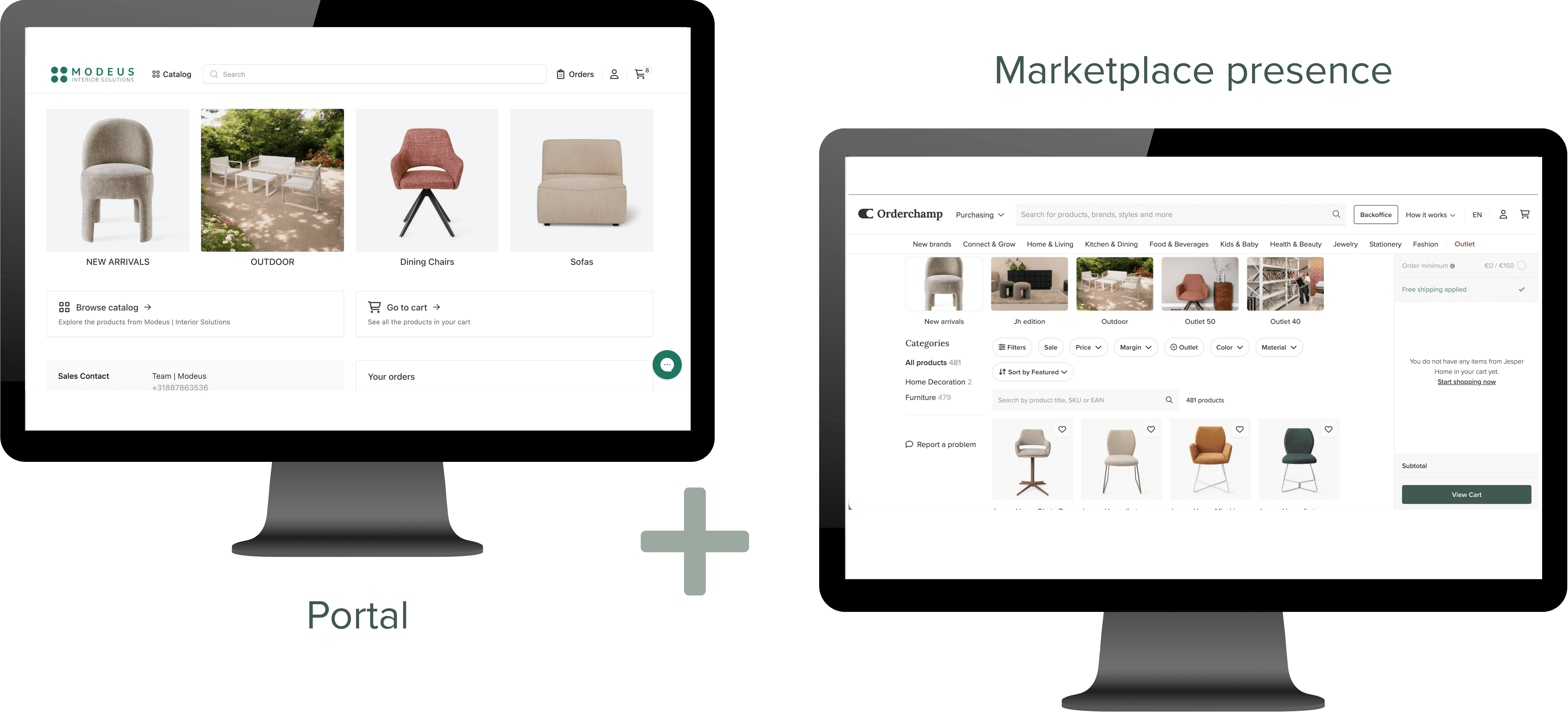 Orderchamp Cloud introduces a different model by combining both approaches. Brands can be discovered by retailers through the Marketplace while maintaining a fully branded B2B Portal that reflects their identity and commercial conditions.