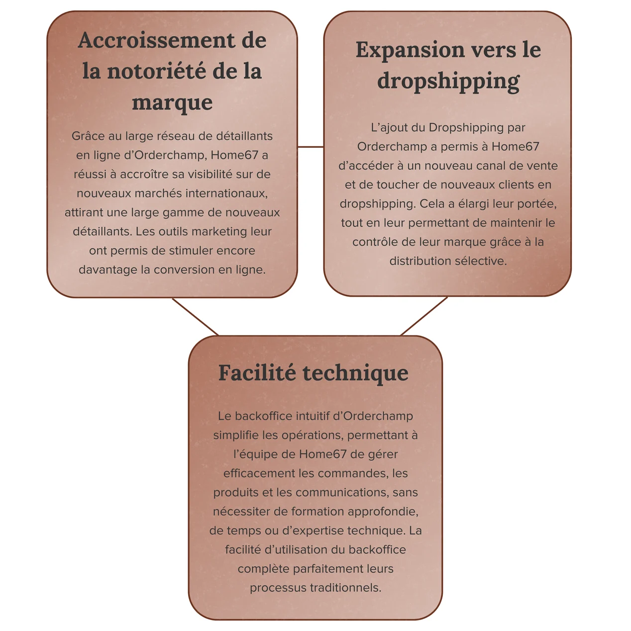 L’intégration des solutions marketplace et dropshipping via Orderchamp a été essentielle pour Home67 afin d’atteindre ses objectifs d’élargissement de sa portée internationale et de stimulation de ses ventes B2B en ligne. Ce partenariat illustre comment les outils conviviaux d’Orderchamp permettent aux marques traditionnelles de lancer et de développer facilement des canaux en ligne supplémentaires, sans tracas. En tirant parti des solutions d’Orderchamp, Home67 a non seulement dépassé ses propres attentes, mais a également fait un premier pas significatif vers la numérisation de ses opérations commerciales et l’ouverture de nouvelles opportunités de croissance.