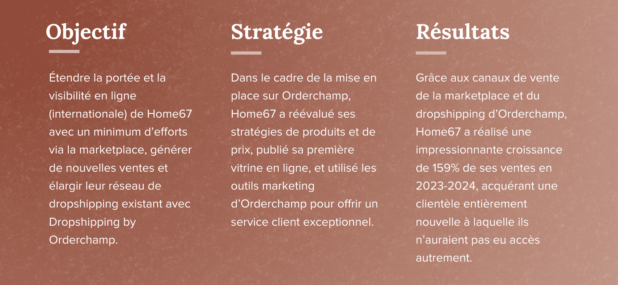 Ce partenariat a permis à Home67 d’accéder à une toute nouvelle base de clients qu’ils n’auraient pas pu atteindre autrement, tout en élargissant considérablement la notoriété de leur marque et en favorisant une croissance internationale continue. Ils ont identifié trois avantages clés qui ont contribué à leur croissance des ventes de 159 % :