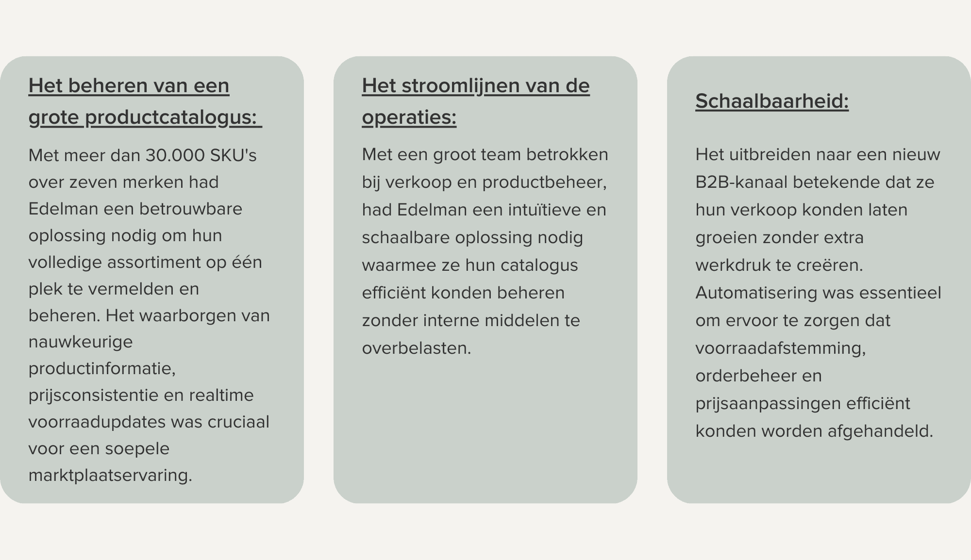 In tegenstelling tot traditionele groothandel, stelde Dropshipping Edelman in staat hun producten met minimale inspanning aan retailers aan te bieden. Bestellingen werden automatisch verwerkt via hun bestaande fulfillment-systeem, wat betekende dat elke verkoop gegenereerd via Dropshipping geen extra handmatige arbeid vereiste. Terwijl individuele bestellingen meestal kleiner waren, zorgde het hoge aantal transacties voor een stabiele en schaalbare inkomstenstroom die moeiteloos werd geïntegreerd met hun bestaande B2C-logistiek.