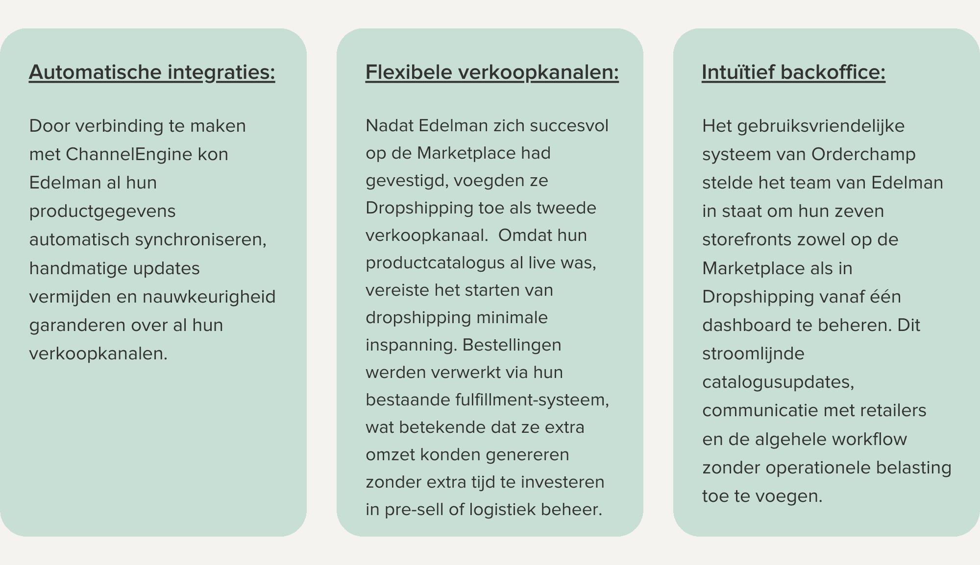 Deze case study onderzoekt hoe Edelman de Marketplace en dropshipping-oplossingen van Orderchamp gebruikte om nieuwe groeimogelijkheden te ontsluiten, terwijl ze hun toewijding aan kwaliteit en uitstekende klantbelevingen handhaafden.